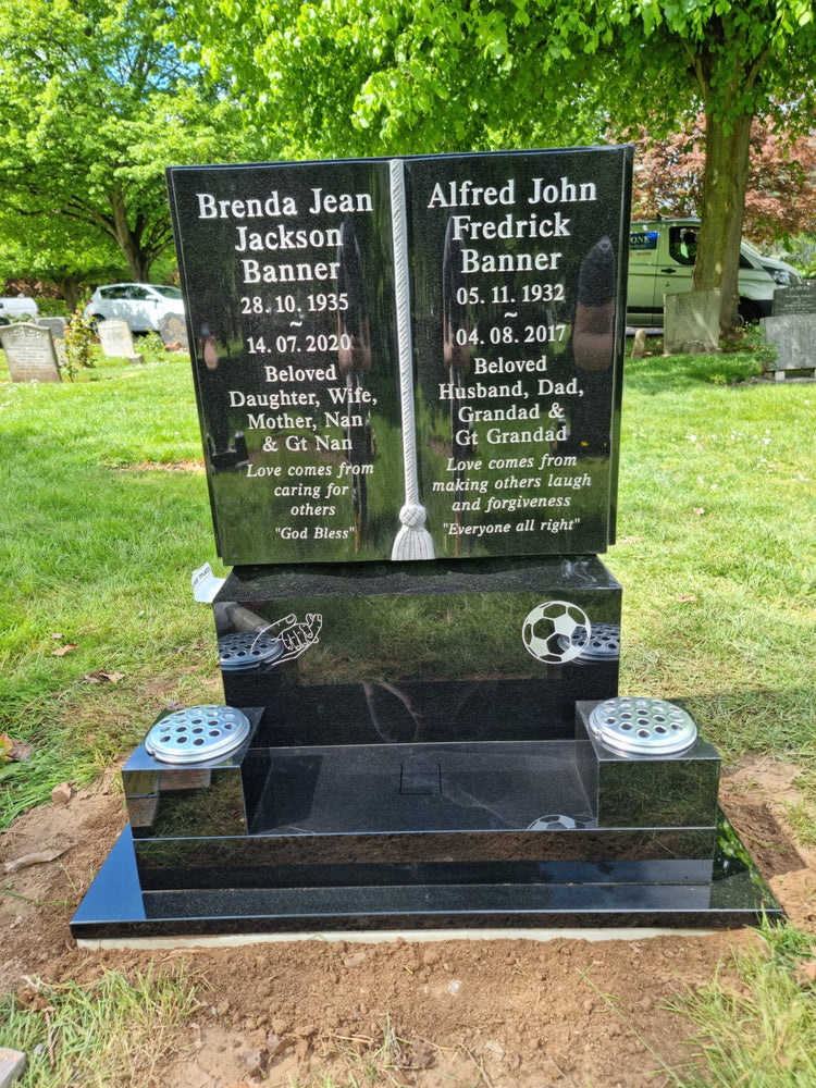 Kerb Set With Book Style Memorial With Carved Tassel To Centre