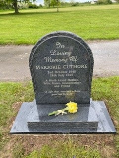 Round top memorial with tiered kerbs and cover slab
