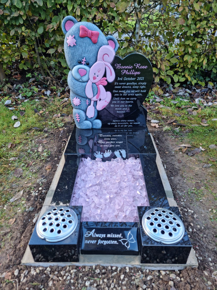 Regularly visiting the place where your child has been buried helps parents feel close to their child. We would encourage you to be involved in the design of your memorial. We can work together until we until we perfectly capture the spirit of your child and the sentiments you would like to convey. This takes time and patience and you will never be hurried.